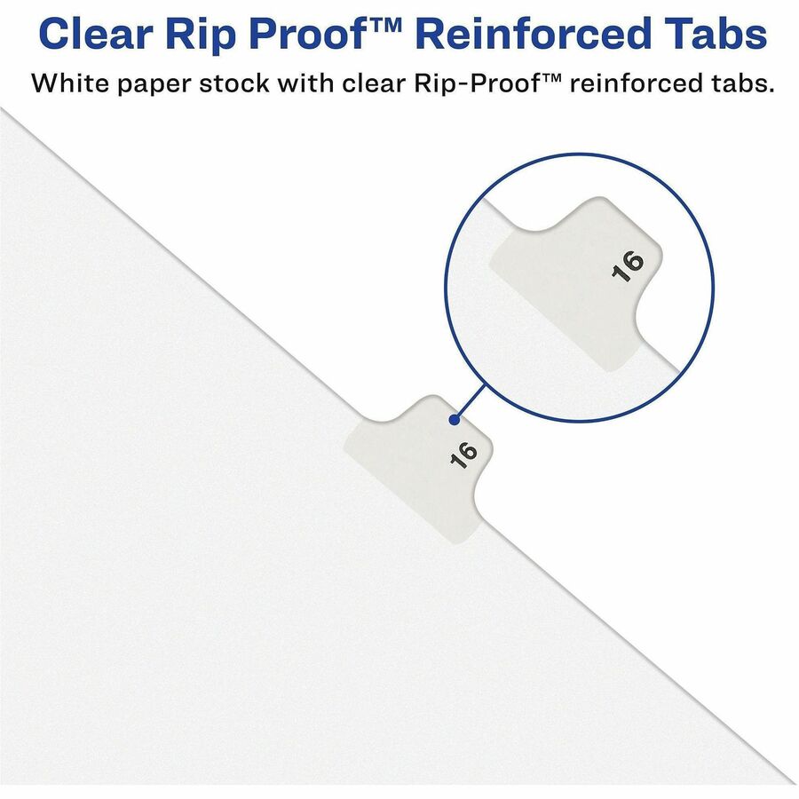 1 Printed Tab(s) - Digit - 21 - 1 Tab(s)/Set - 8.5" Divider Width x 11" Divider Length - Letter - White Paper Divider - White Tab(s) - 20% Recycled - Reinforced Tab, Rip Proof, Unpunched - 1 Pack