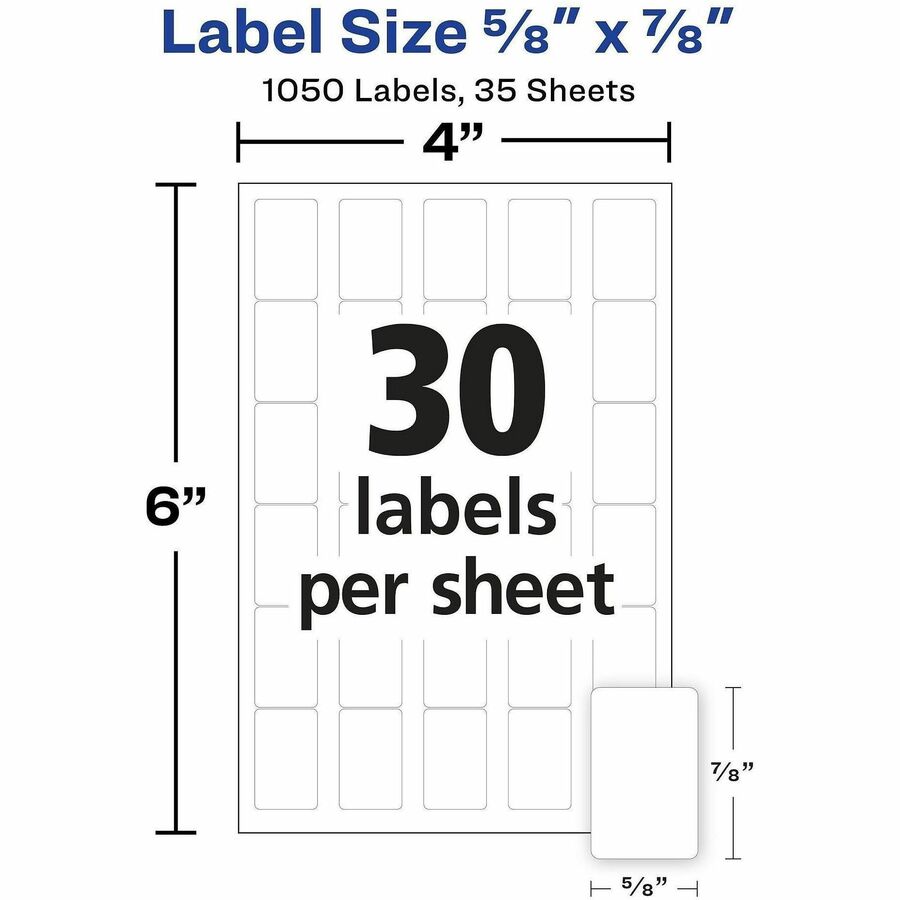 5/8" Width x 7/8" Length - Removable Adhesive - Rectangle - White - Paper - 40 / Sheet - 1050 / Pack