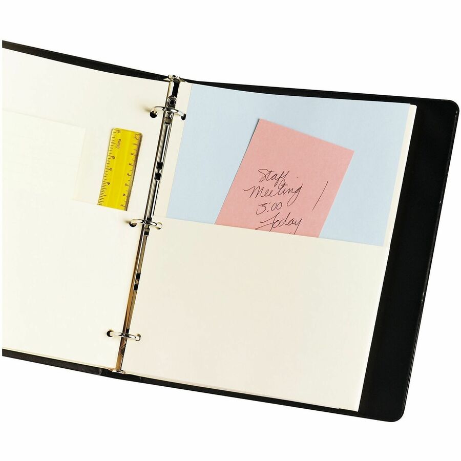 - Double pocket dividers store letter-size and smaller documents without punching or folding them