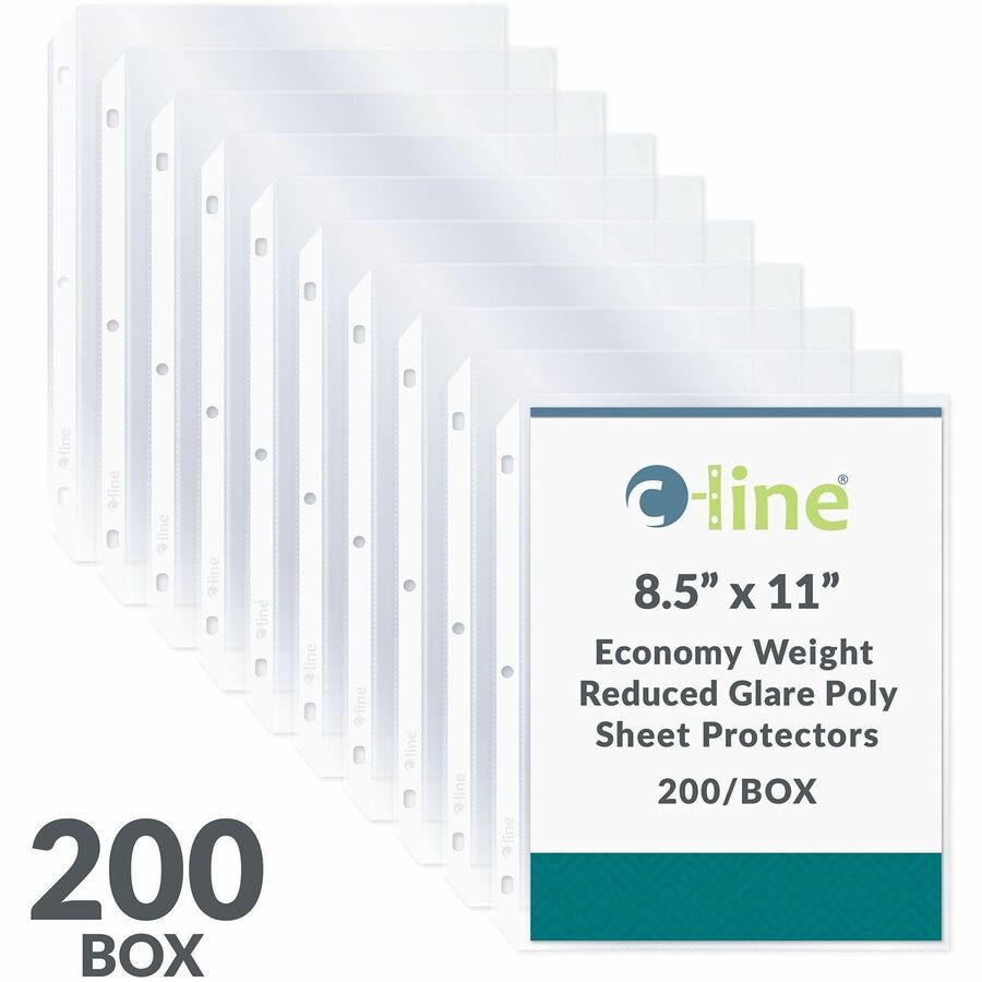 | Marketing Information | Sheet protectors offer a top-loading design, being sealed on three sides. No punching of sheets is necessary. Load the sheet while the protector remains in the binder. Sheet protectors fit standard three-ring binders. Polypropylene material offers safe, archival quality, no photocopy-transfer protection. Strong, reinforced binding edge prevents tears with heavy use. |