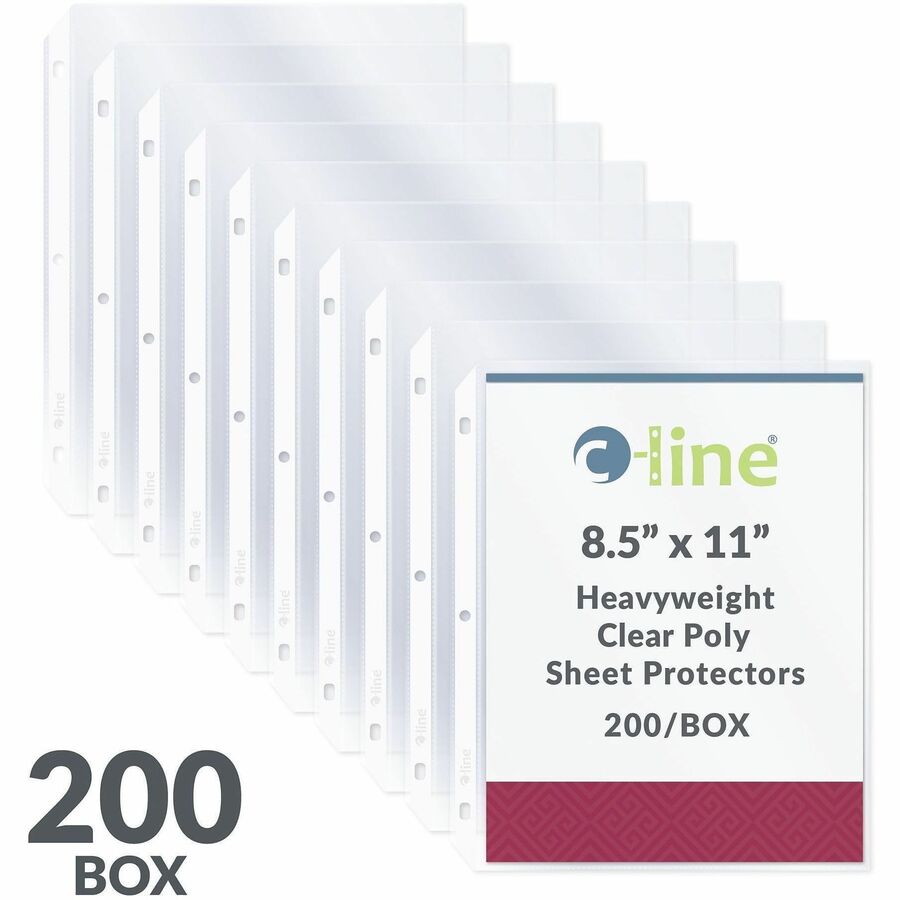| Marketing Information | Sheet protectors offer a top-loading design, being sealed on three sides. No punching of sheets is necessary. Load the sheet while the protector remains in the binder. Sheet protectors fit standard three-ring binders. Polypropylene material offers safe, archival quality, no photocopy-transfer protection. Strong, reinforced binding edge prevents tears with heavy use. |