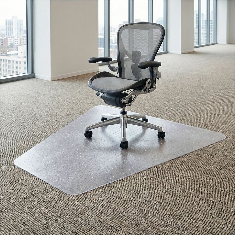 Carpeted Floor - 66" Length x 60" Width x 0.125" Thickness - Lip Size 12" Length x 20" Width - Vinyl - Clear - 1 Each