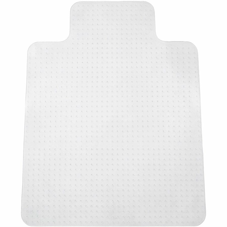 | Marketing Information | Chairmat with a standard lip is designed and properly weighted for firm, low-pile carpets. Sturdy, 1/9" thick material protects your carpet from wear and tear caused by chair casters. Easy-glide rolling surface provides effortless mobility. Lightly textured top surface is slip-resistant and scuff-resistant. Studded bottom delivers superior gripping power. Smooth-finish edge allows ease in carpet-to-mat transition. Free and Clear formula produces an exceptionally clear vinyl mat that is nonphthalate, noncadmium and BPA-free. |